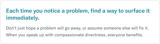 And how we give feedback matters. The key is sharing feedback with compassionate directness. Compassionate directness is all about speaking up, disagreeing, and surfacing problems and pain points in real time. And doing it with compassion, empathy, and understanding.