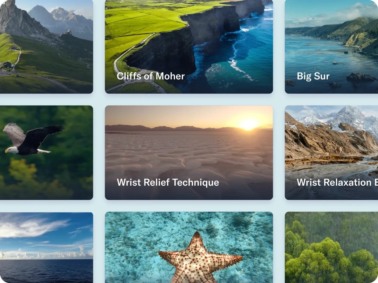 Thrive’s Library consists of hundreds of 60-second Reset videos — stretching, breathing, mindfulness, and gratitude breaks along with calming visuals, awe-inspiring natural landscapes and the latest stress-relief techniques — each with a guided breathing bubble that helps users inhale, exhale and bring themselves back to center before their next customer interaction.